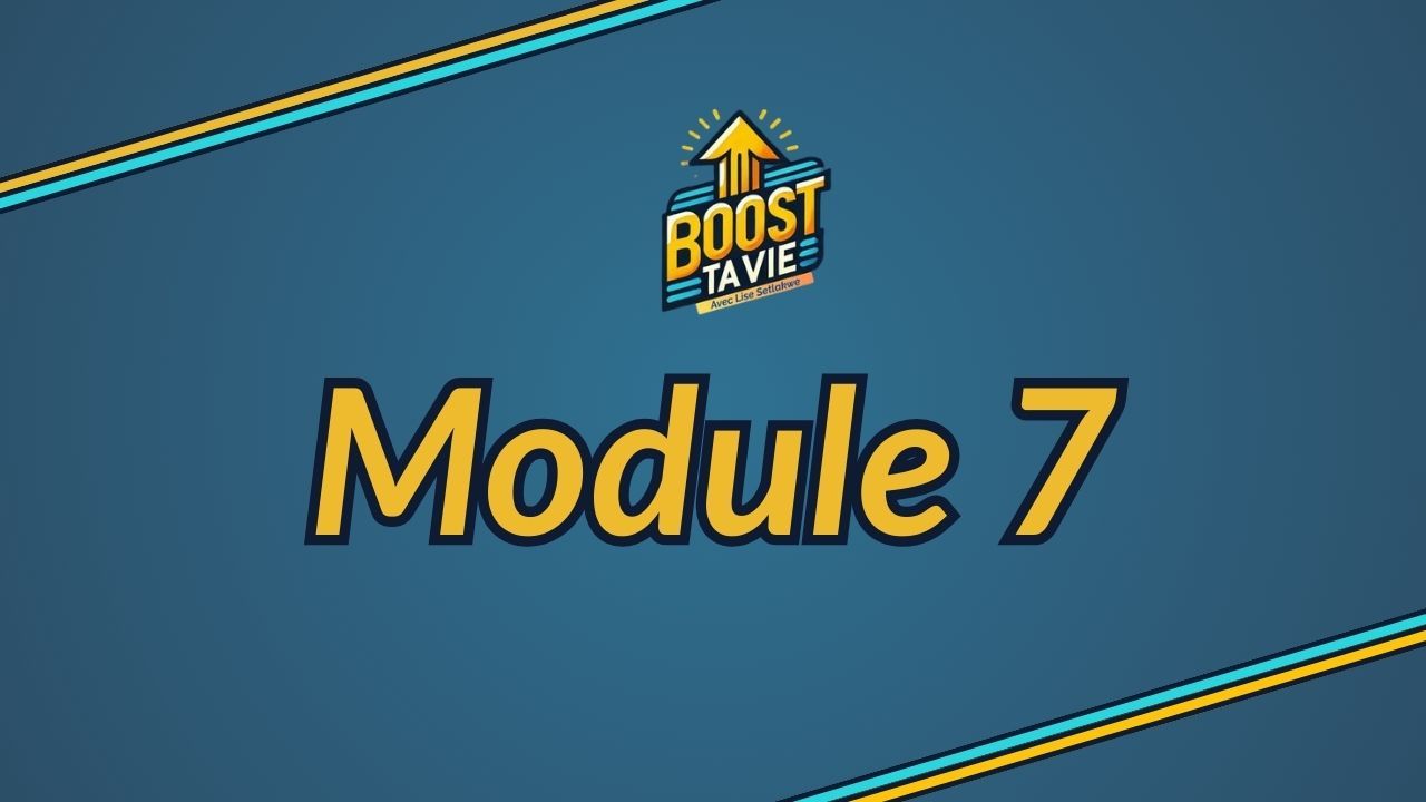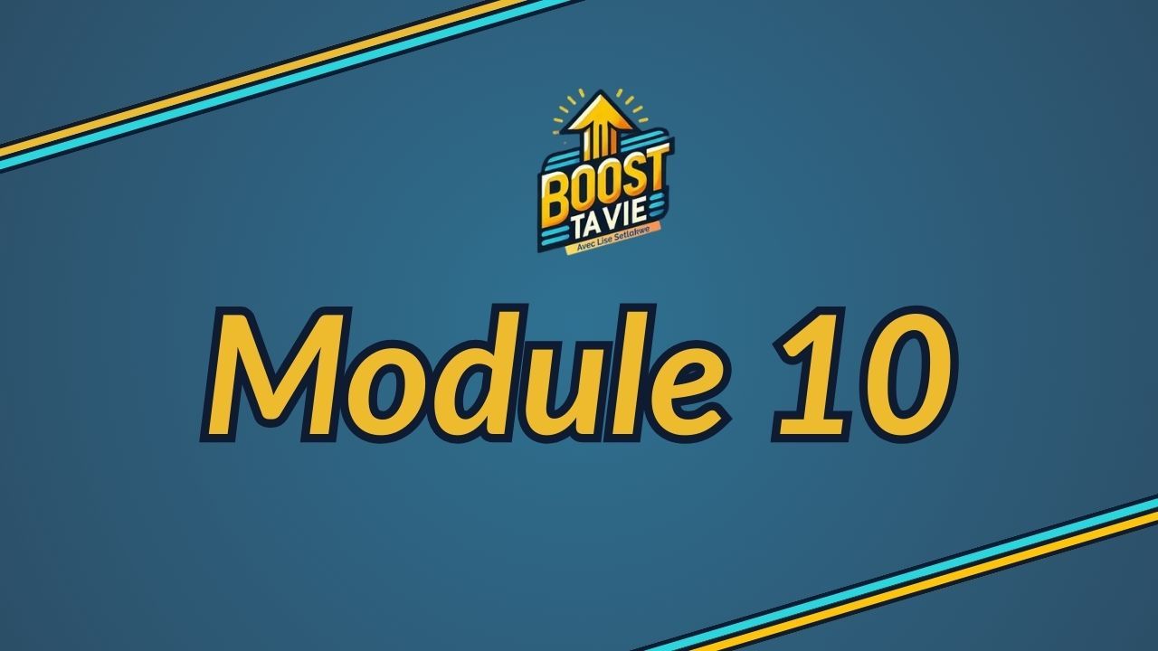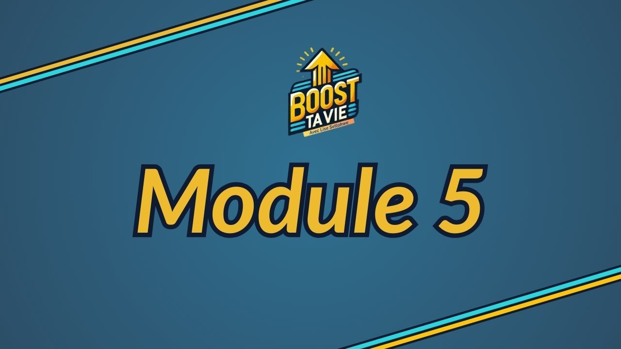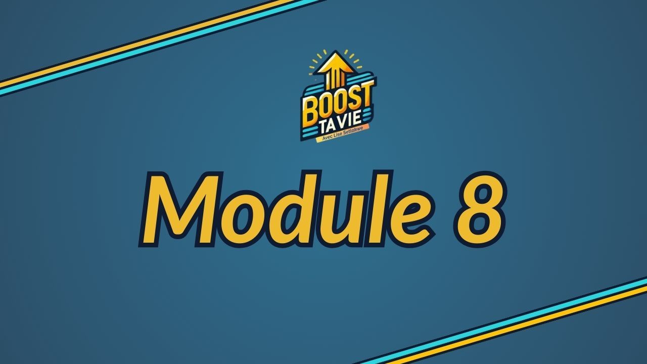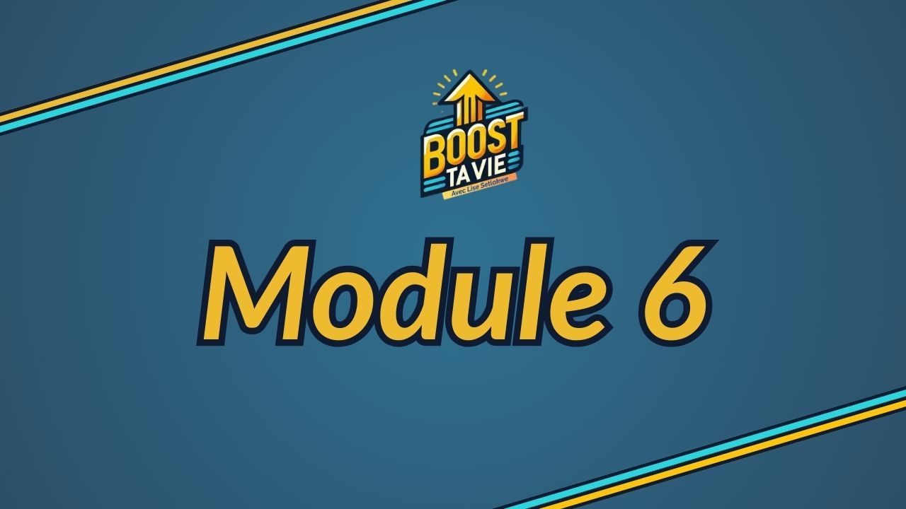 Ce module t’aide à reprendre le contrôle sur ton temps en apprenant à prioriser ce qui compte vraiment, à éliminer les distractions inutiles et à avancer avec clarté et efficacité vers tes objectifs, tout en maintenant un équilibre sain avec ton environnement.